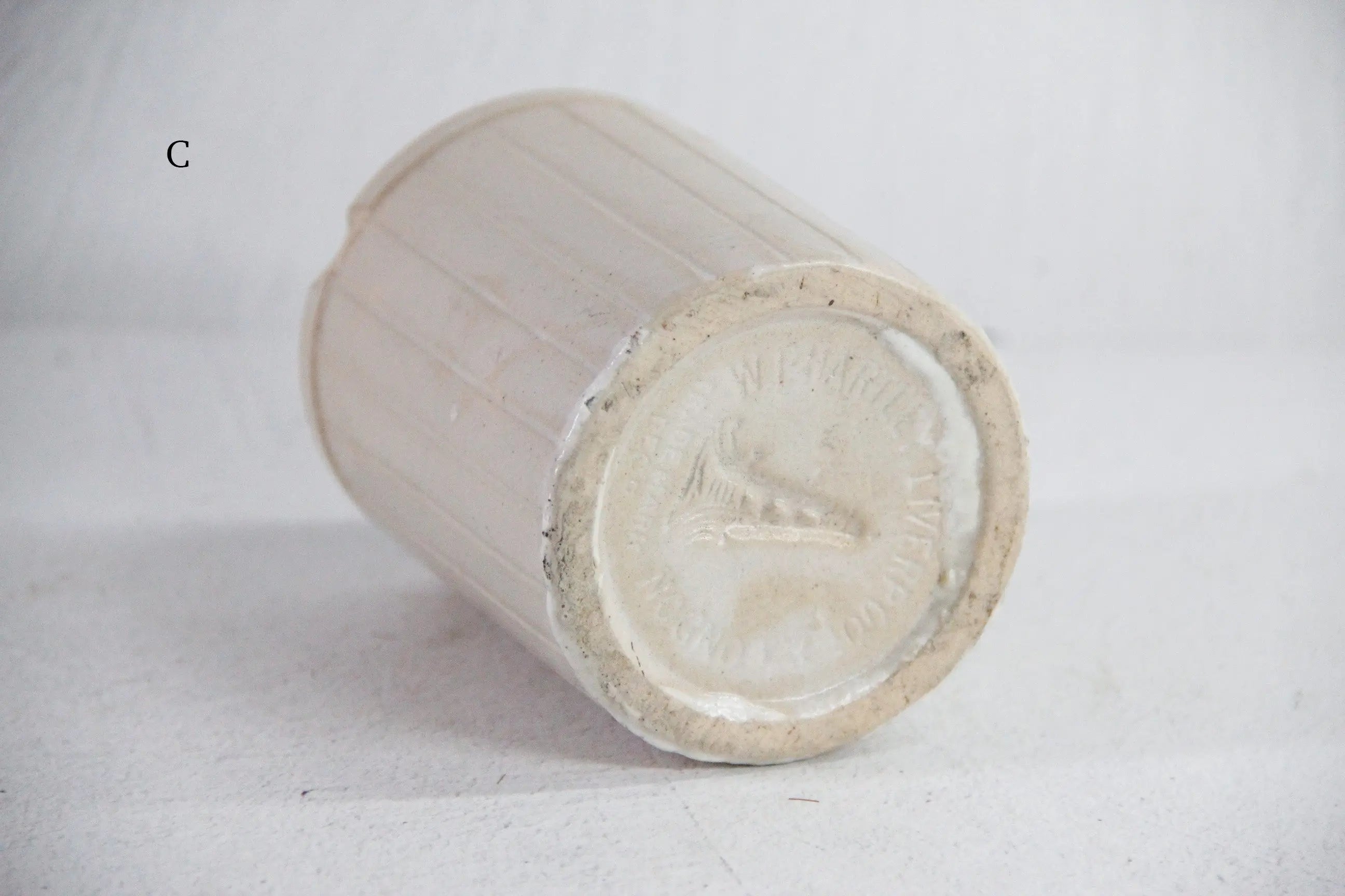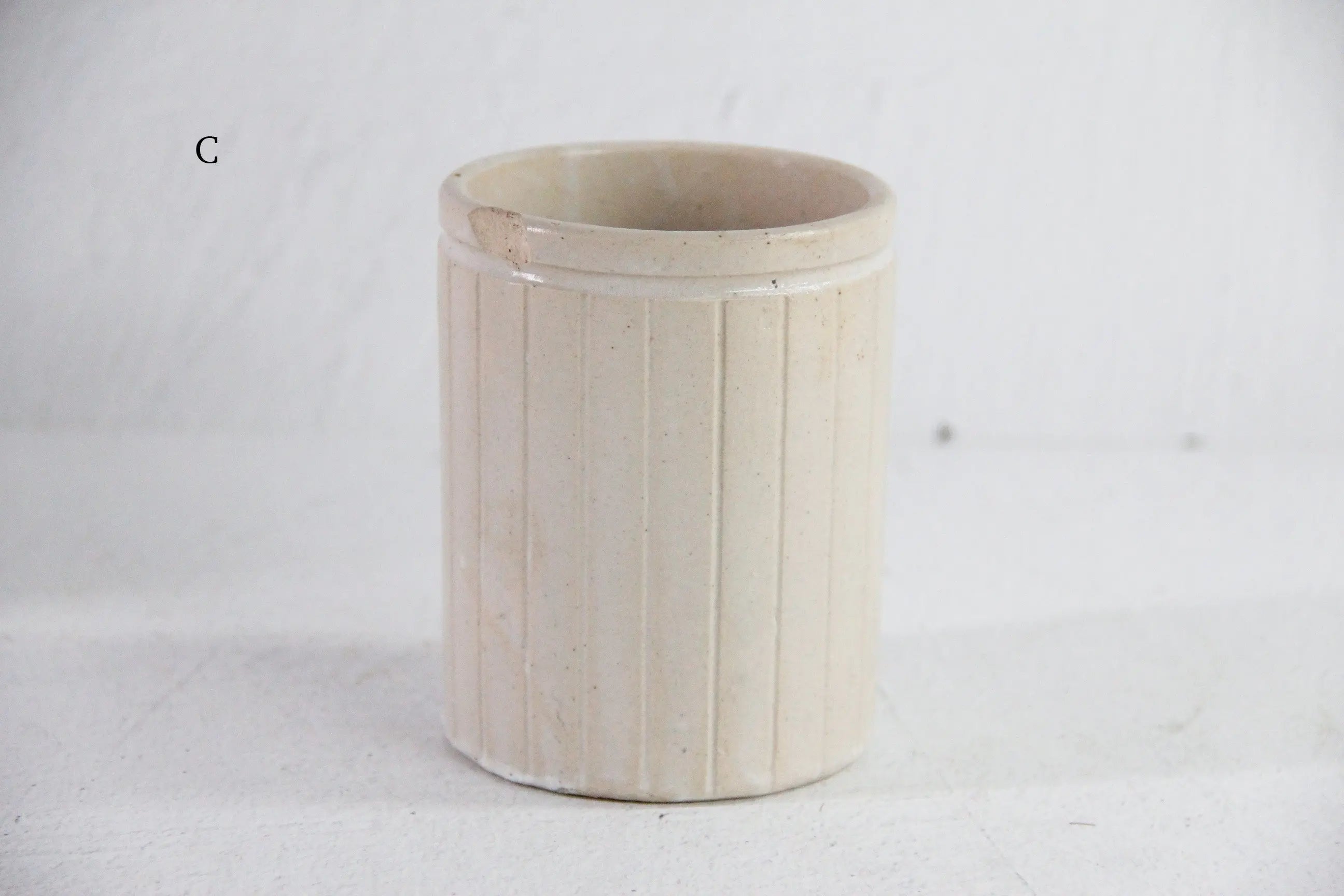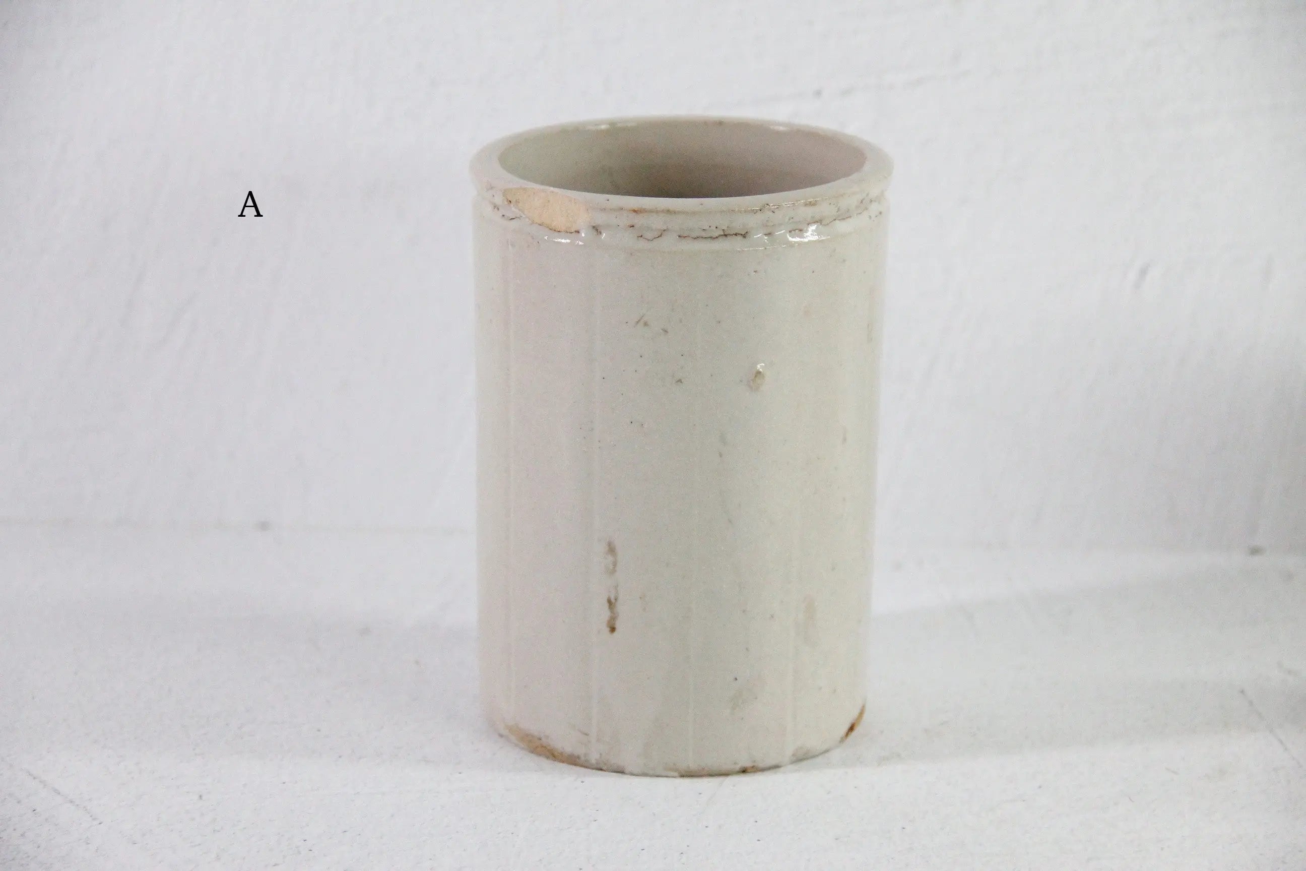 This English stoneware pot, once designed for marmalade or preserves, features a sturdy build and a cozy, textured glaze typical of early 1900s utility pottery. Its straightforward, practical design blends seamlessly with rustic, farmhouse, or minimalist decor. Whether you use it to hold utensils, display dried flowers, or simply enjoy it as a vintage pottery treasure, it adds a touch of timeless charm.